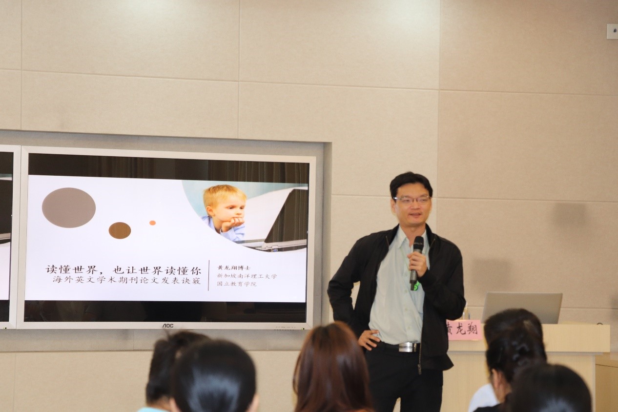 2016年6月25日上午9:30-11:30,教育信息化研究中心邀请新加坡南洋理工大学国立教育学院高级研究科学家、博士生导师黄龙翔博士在田楼517教室为中心师生做学术报告。黄老师为师生带了《读懂世界,也让世界读懂你——英文SSCI学术期刊论文发表诀窍》学术报告。本次报告由研究中心主任陈明选教授主持,研究中心及其他学院的教师与研究生聆听了本次学术讲座,现场交流气氛热烈。
